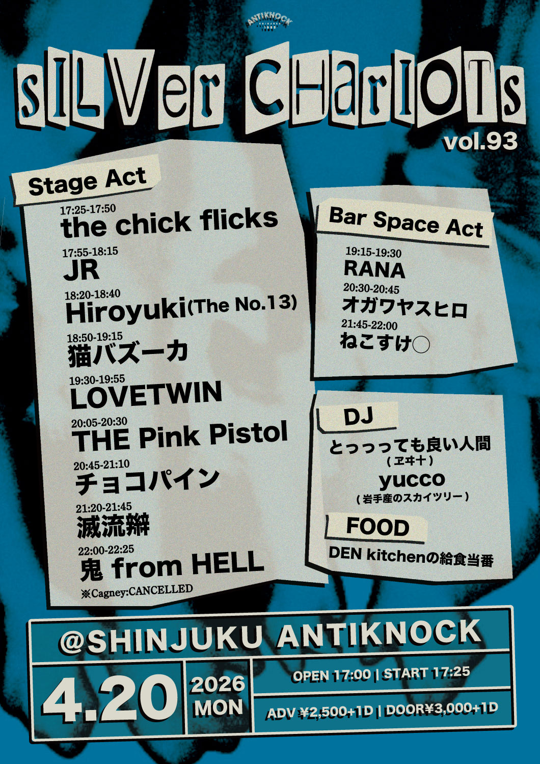 ※出演予定だったCagneyが都合によりキャンセルになりました。